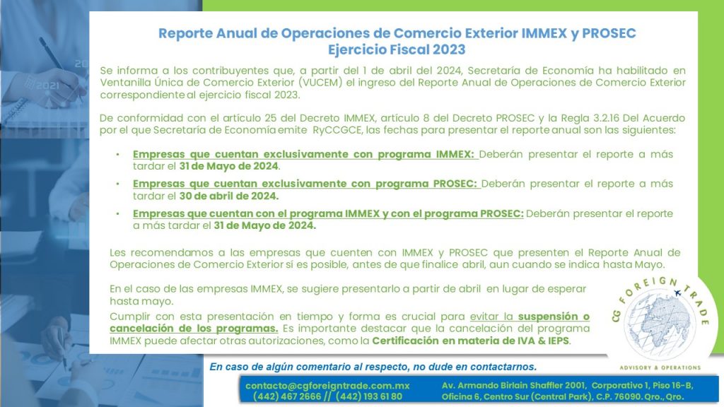 Reporte Anual de Operaciones de Comercio Exterior PROSEC e IMMEX Ejercicio Fiscal 2023